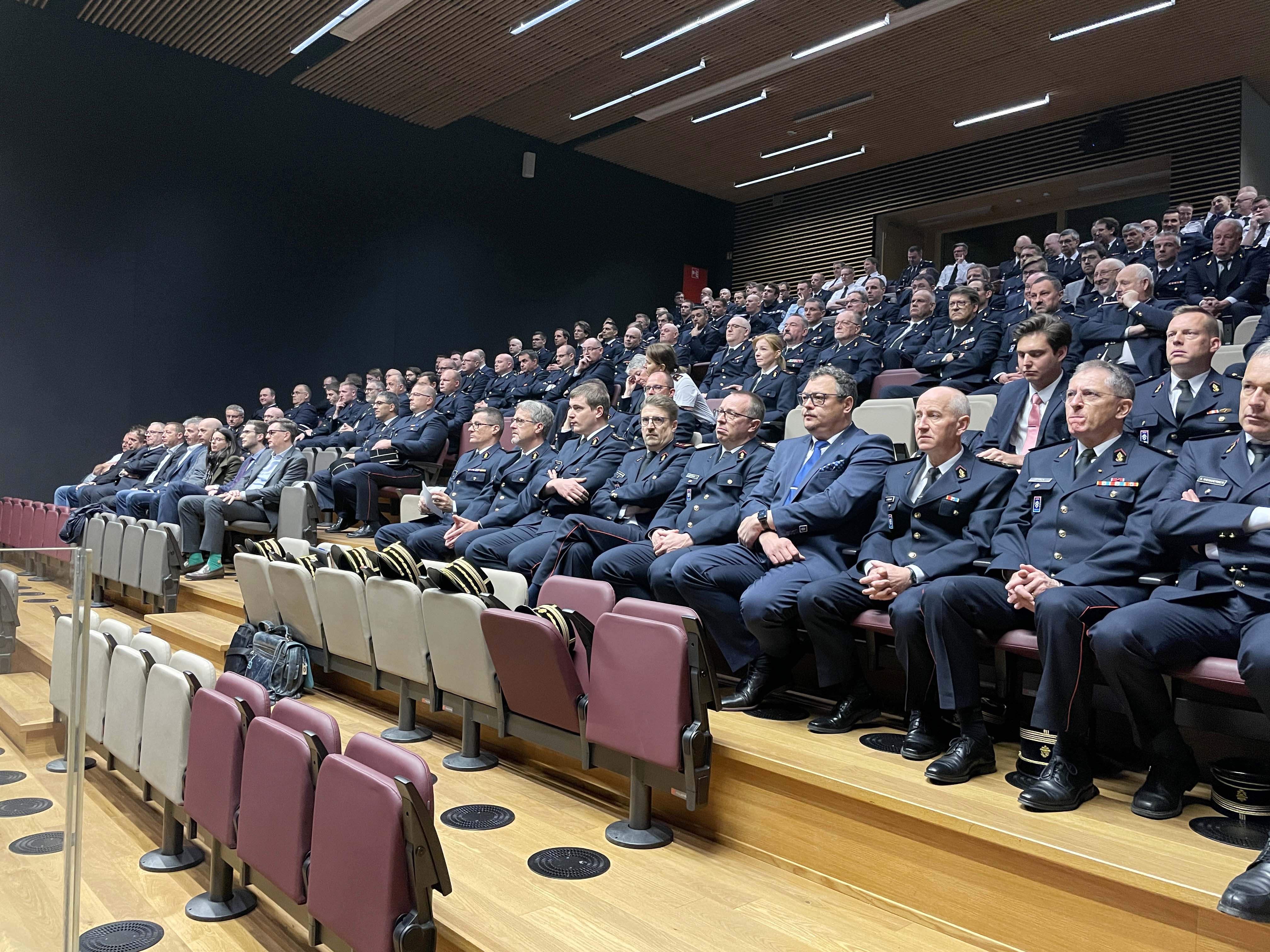 Le Directeur général Paul Schroeder et le Directeur de la stratégie opérationnelle, Raymond Guidat, se sont pour leur part attardé sur la mise en œuvre du Plan National d’Organisation des Secours. Des 5 orientations stratégiques décrites par M. Becker découlent 15 projets, 107 « workpackages » et 270 délivrables. La feuille de route présentée à cette occasion doit permettre au CGDIS d’atteindre de façon structurée ses objectifs afin de répondre aux défis et besoins du futur. Dans l’optique de continuer à développer le CGDIS vers une organisation apprenante, les utilisateurs clés du terrain seront sollicités au courant des prochains mois et années afin de participer aux travaux.