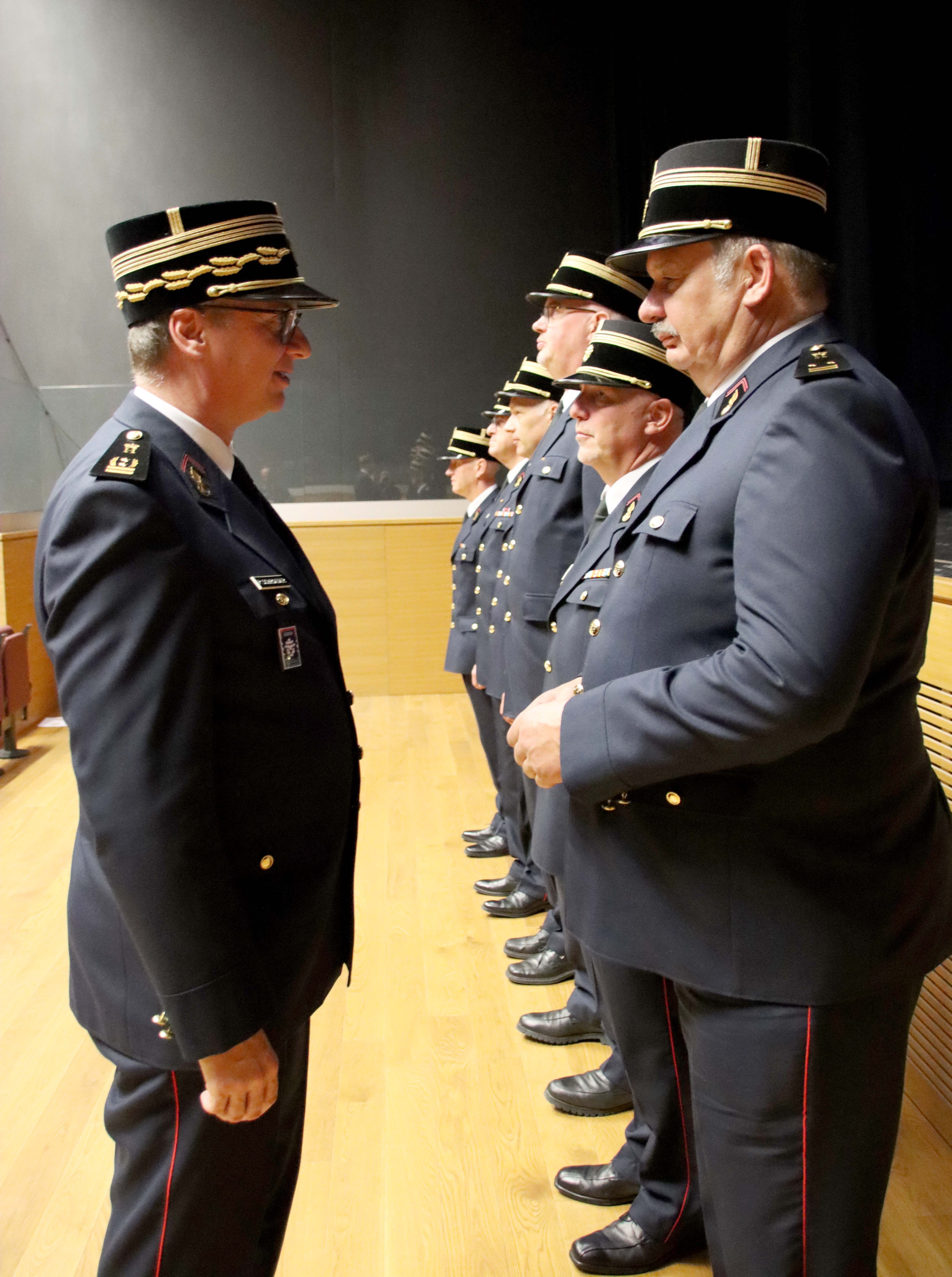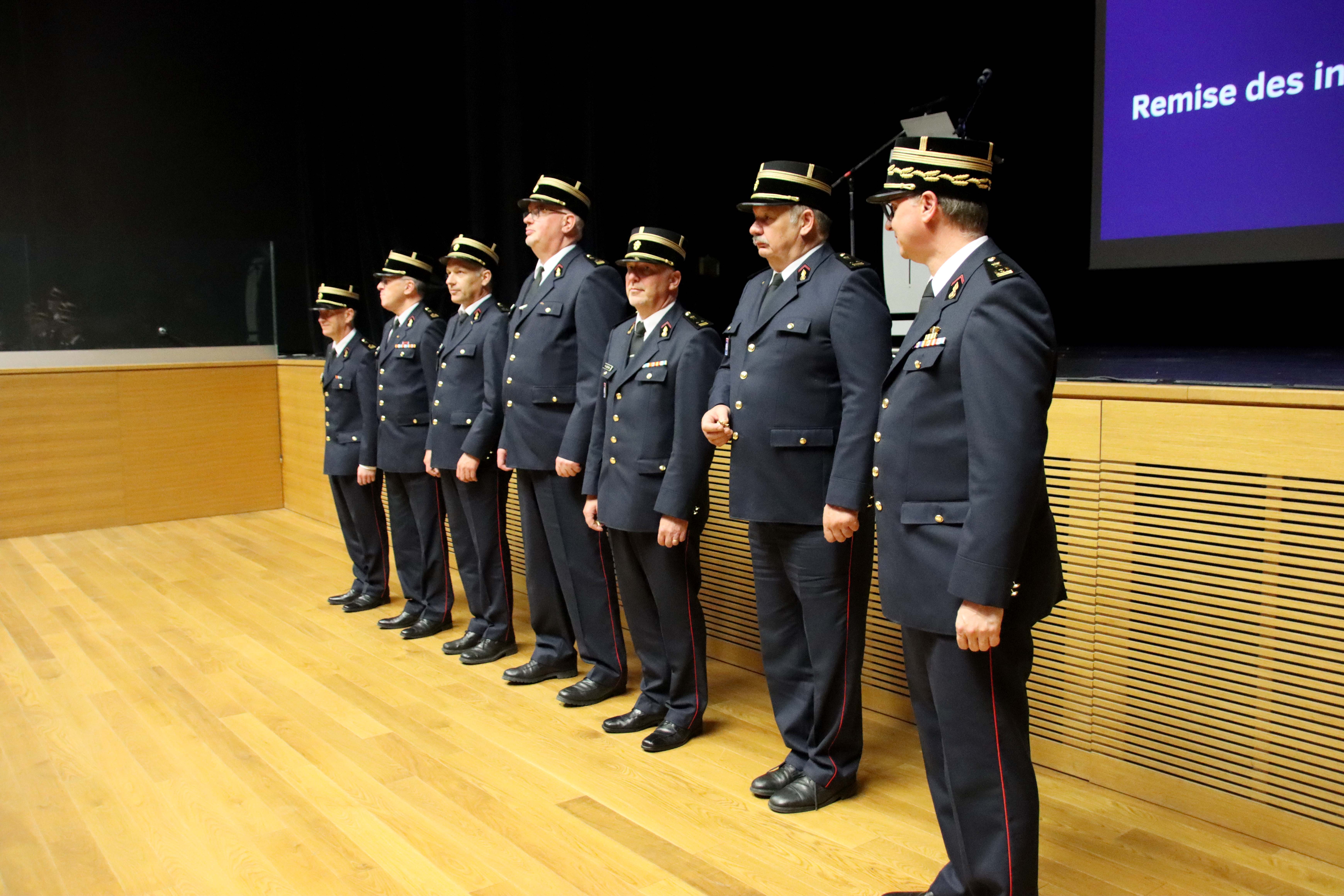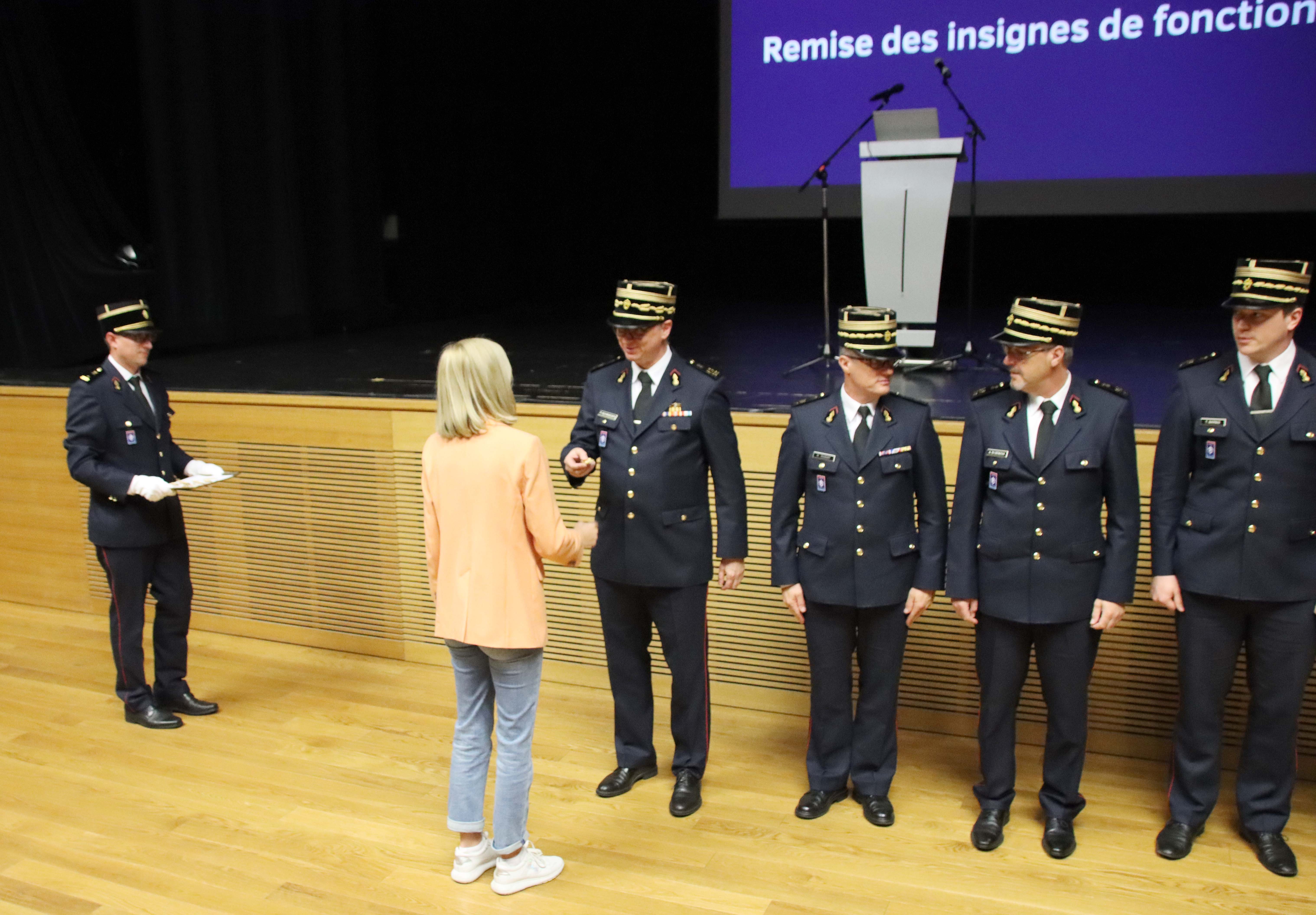 La ministre a ensuite remis leurs insignes de fonction au comité directeur, aux chefs de zones de secours et adjoints. Les chefs CIS/GIS et leurs adjoints se sont vue remettre leur insignes par leur chef de zone.Ces insignes de fonction à porter lors de cérémonies officielles sont destinés à distinguer les fonctions dirigeantes prévues par la loi modifiée du 27 mars 2018.