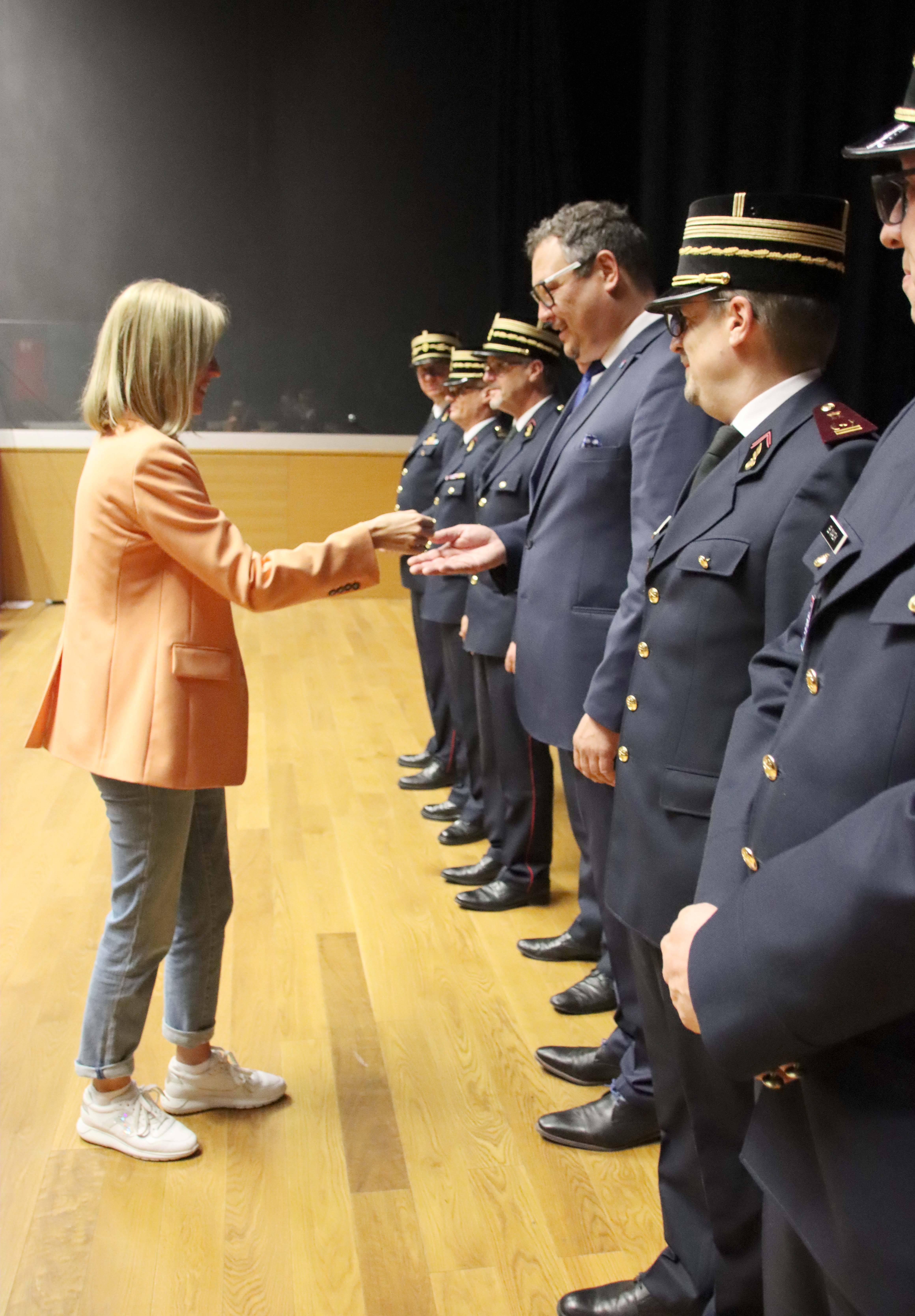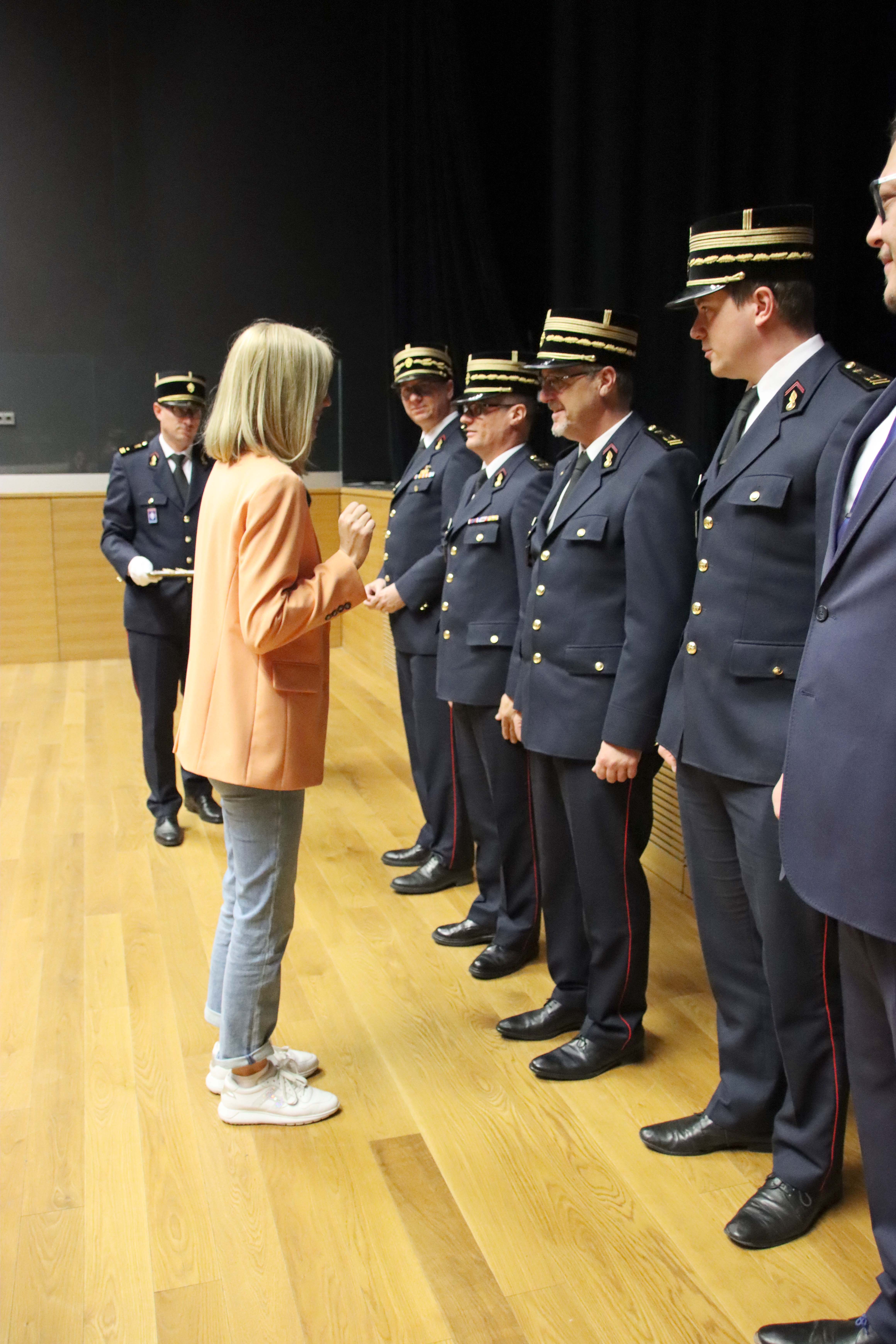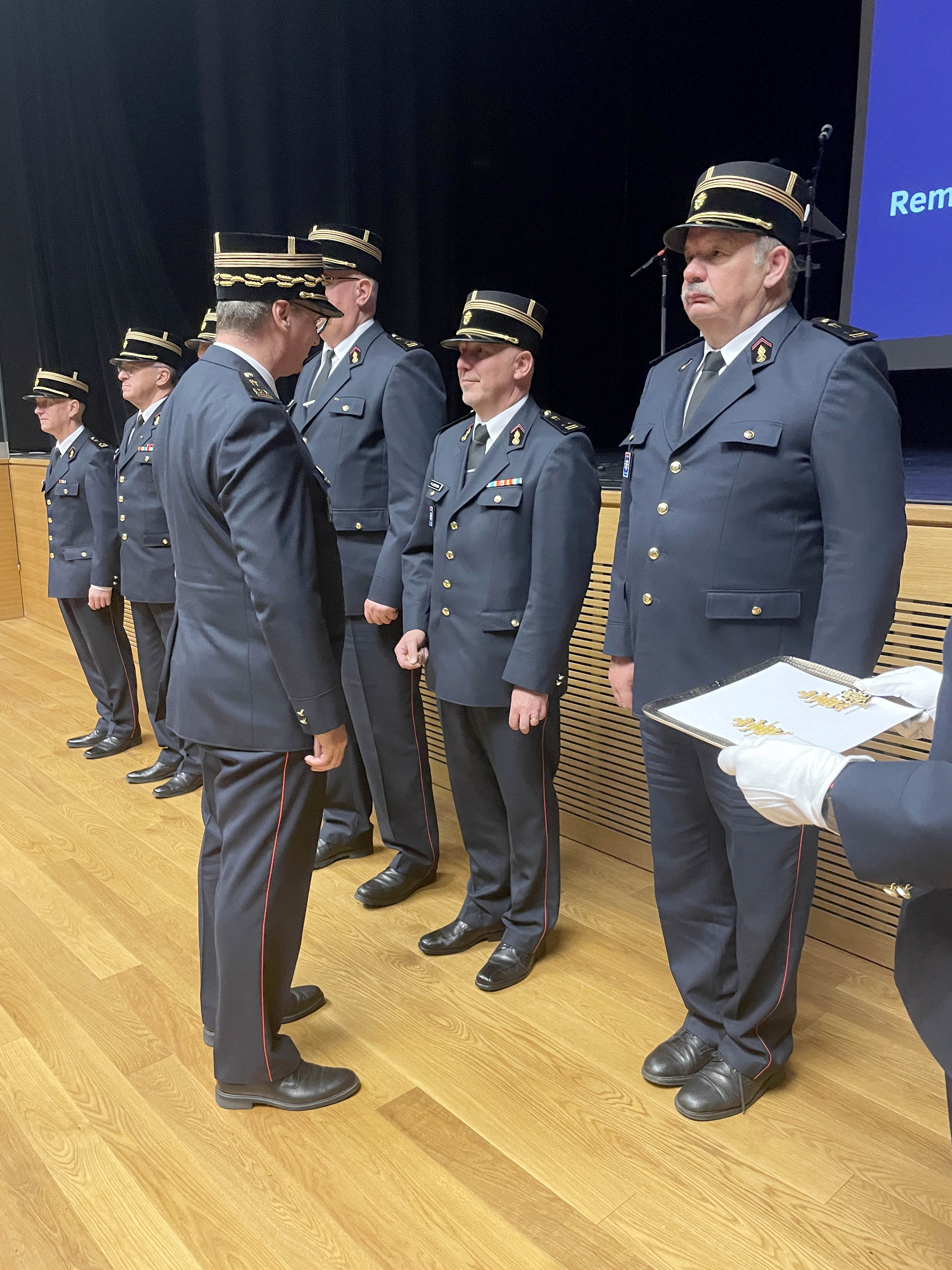 La ministre a ensuite remis leurs insignes de fonction au comité directeur, aux chefs de zones de secours et adjoints. Les chefs CIS/GIS et leurs adjoints se sont vue remettre leur insignes par leur chef de zone.Ces insignes de fonction à porter lors de cérémonies officielles sont destinés à distinguer les fonctions dirigeantes prévues par la loi modifiée du 27 mars 2018.