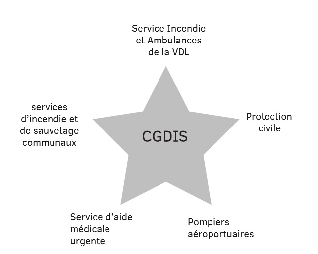 De par la volonté de se démarquer des grades ayant existés dans les services de secours jusqu’à présent et de donner une réelle valeur opérationnelle aux grades du CGDIS, la décision a été prise de cumuler deux éléments distincts, à savoir les barrettes que l’on retrouve sur les grades en vigueur avant la réforme, mais également l’étoile à 5 branches. Ceci afin de créer un visuel unique et ne portant pas à confusion. L’étoile à 5 branches qui a déjà été portée par les pompiers luxembourgeois dans la période d’après-guerre, symbolise en outre l’union des cinq entités qui ont été regroupées au sein du Corps grand-ducal d’incendie et de secours : les services d’incendie et de sauvetage communaux, les unités de la protection civile, le service d’incendie et de sauvetage de l’Administration de la navigation aérienne, le Service d’aide médicale urgente, ainsi que le Service Incendie et Ambulances de la Ville de Luxembourg.